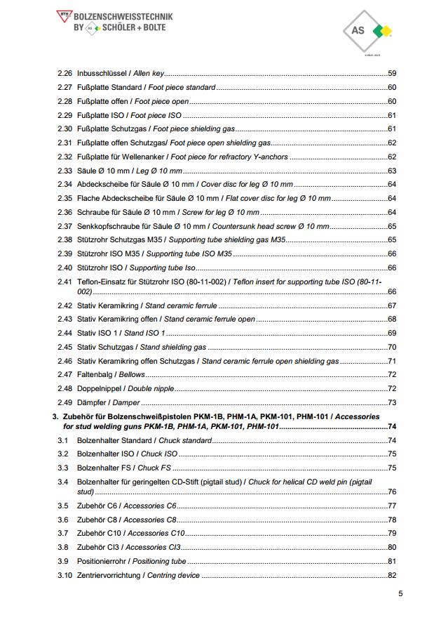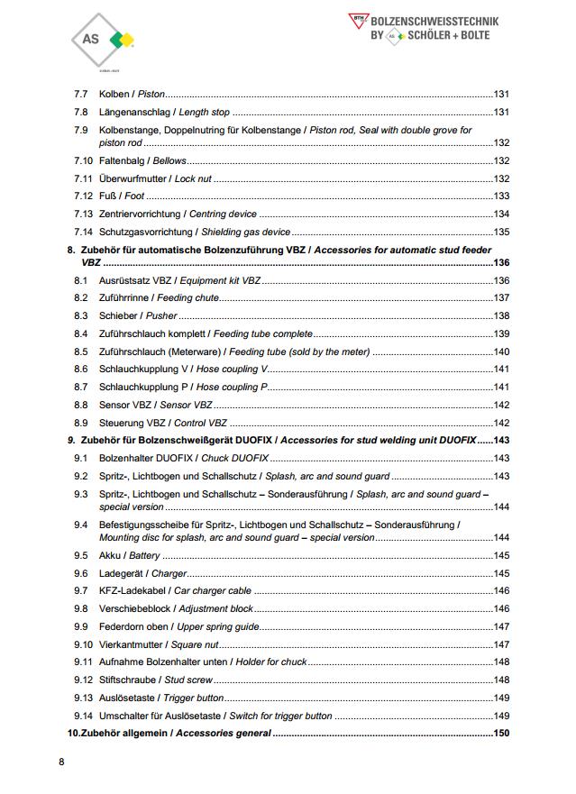 The following accessories and wear parts summary table are for reference only! For specific details and prices, please contact the person in charge of the related business department by telephone or email, we will be happy to provide you with timely service!