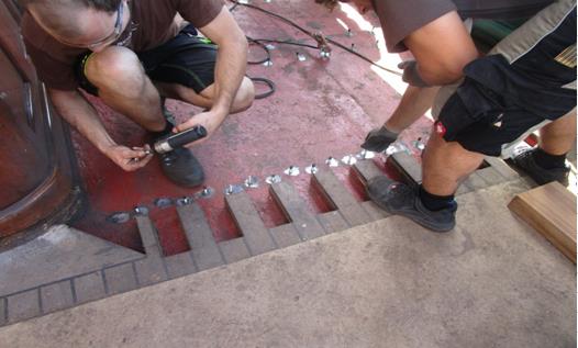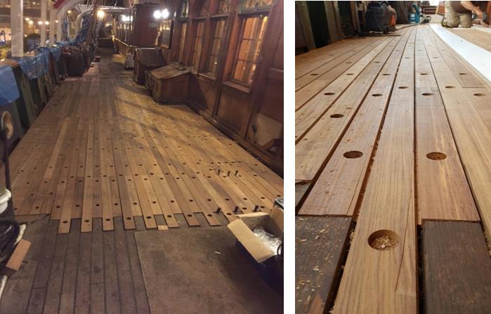 -Fitting deck boards on a Clipper ship