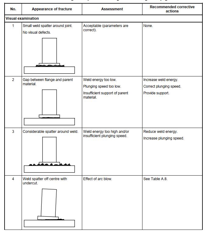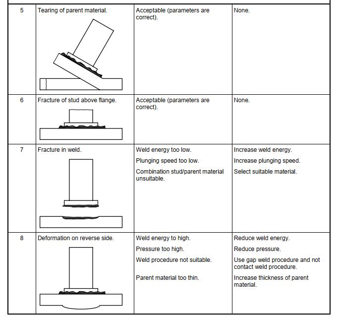 Weld assessment and recommended corrective actions for capacitor discharge stud welding