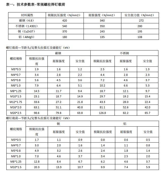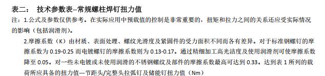 常規(guī)螺柱焊釘扭力值技術(shù)參數(shù)